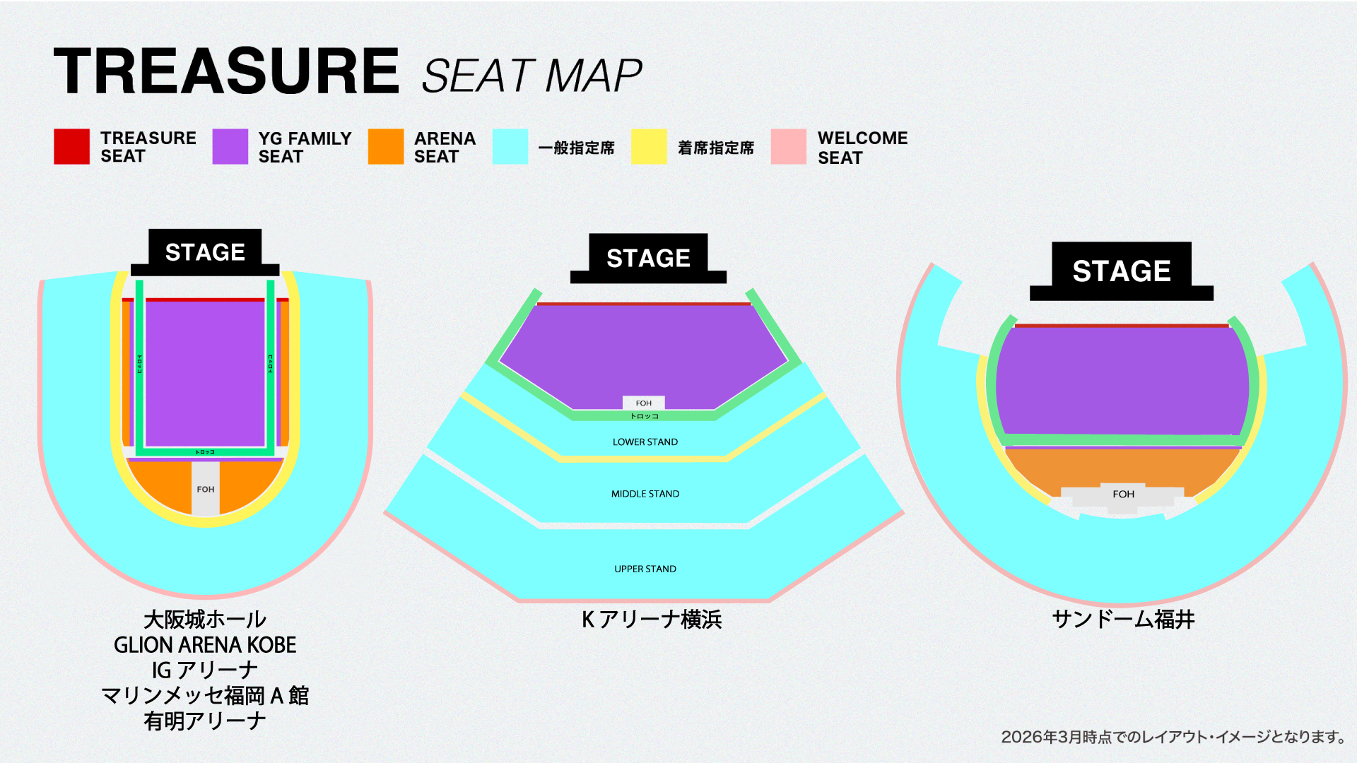 ※座席レイアウト変更時は、2026年3月13日(金)時点で、ご案内している各席種の座席レイアウト・イメージよりも、低価格の席種エリアへ変更されることはございませんが、座席レイアウトに変更が発生する場合がある旨を予めご了承ください。